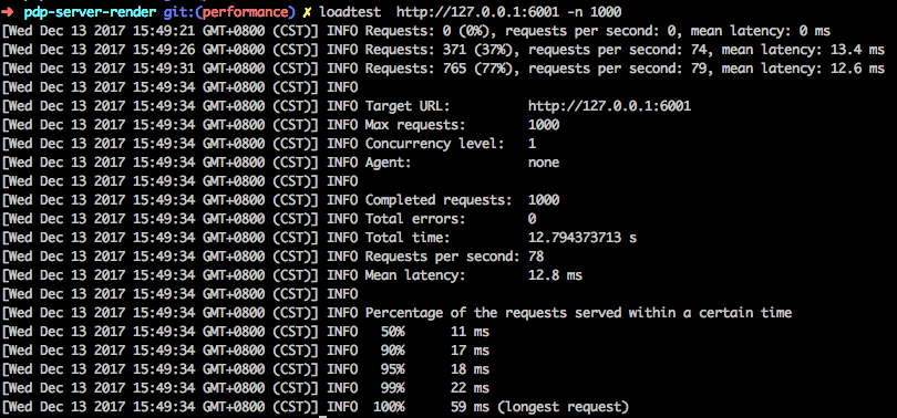 通过loadtest请求1000次,统计平均RT, 初始RT为15.8ms
